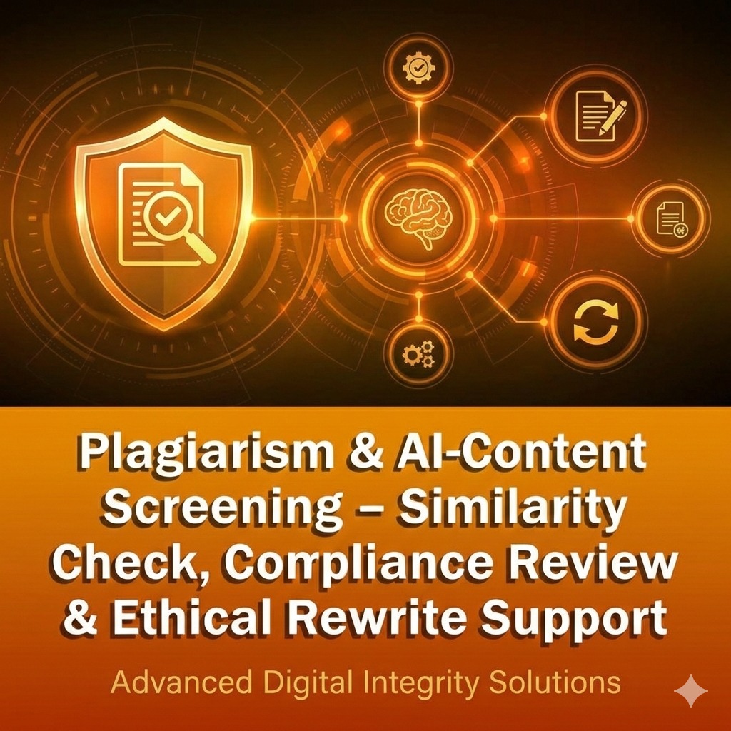 At Dextrose Technologies Pvt. Ltd., we provide Plagiarism/Similarity and AI-content screening to help researchers and organizations ensure documents are submission-ready, original, and compliant with journal/university expectations. Our service focuses on identifying risk areas early and improving writing quality through ethical corrections—without compromising scientific meaning. What we do Plagiarism / Similarity Screening: Identify high-similarity sections, source overlap patterns, and citation gaps. AI-Content Screening (as applicable): Flag sections that may be interpreted as AI-generated or overly generic, and recommend improvements for authenticity and clarity. Citation & Paraphrasing Review: Improve attribution, strengthen paraphrasing, and reduce accidental similarity while preserving technical accuracy. Submission-Readiness Guidance: Provide a clear action list to align with your target journal/university policies. What you receive * Similarity screening summary (overall + section-wise risk highlights) * Marked-up document notes (problem paragraphs and recommended fixes) * Ethical rewrite guidance (clarity + originality improvements) * Final readiness checklist for submission Compliance note This service is intended for academic and publishing integrity. We do not support bypassing detection systems or misrepresenting authorship.