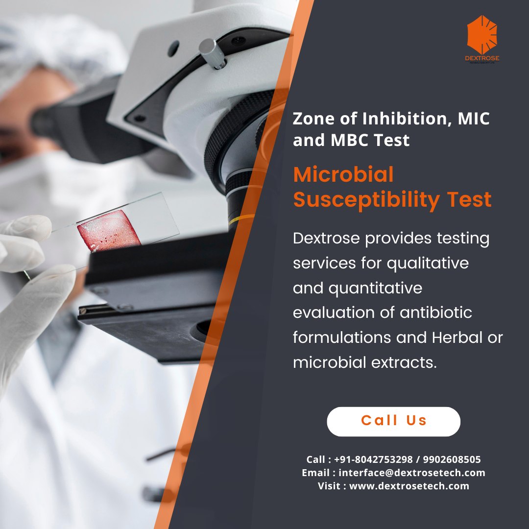 Dextrose Technologies offers a range of testing services for qualitative and quantitative evaluation of antibiotic formulations, herbal or microbial extracts. These include the Zone of Inhibition, Minimum Inhibitory Concentration (MIC), and Minimum Bactericidal Concentration (MBC) tests.
