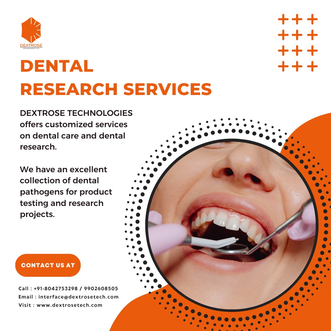 Dextrose Technologies Private Limited provides Dental research services which plays a pivotal role in advancing our understanding of oral health, dental diseases, treatment modalities, and innovations in dental care. These services encompass a wide range of scientific investigations aimed at improving dental practices, patient outcomes, and overall oral well-being. From studying the intricacies of dental materials to exploring the genetics of oral diseases, dental research services contribute to evidence-based advancements that shape modern dentistry. #DentalResearch#DentalScience#DentalInnovation #OralHealthResearch#DentalStudies #DentalTech#DentalData#DentalDiscoveries #DentalLabResearch#DentalAcademic #ResearchDentistry#DentalHealthScience #DentalResearchLab#SmileResearch#OralBiology #DentalExperts#DentalAnalysis#DentalTechAdvances #DentalCareResearch#OralHealthInnovations To know more: Log on to www.dextrosetech.com Contact No: 9902608505