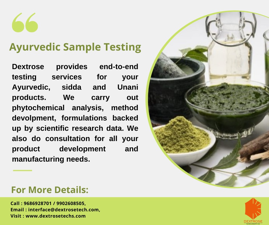 Dextrose Technologies Provide Phytochemical Analysis Such as Alkaloids, flavonoids, Phenols, Tannin, Glycosides, Saponins, Essential oil by TLC HPLC, GC, GCMS, FTIR Methods and Techniques .