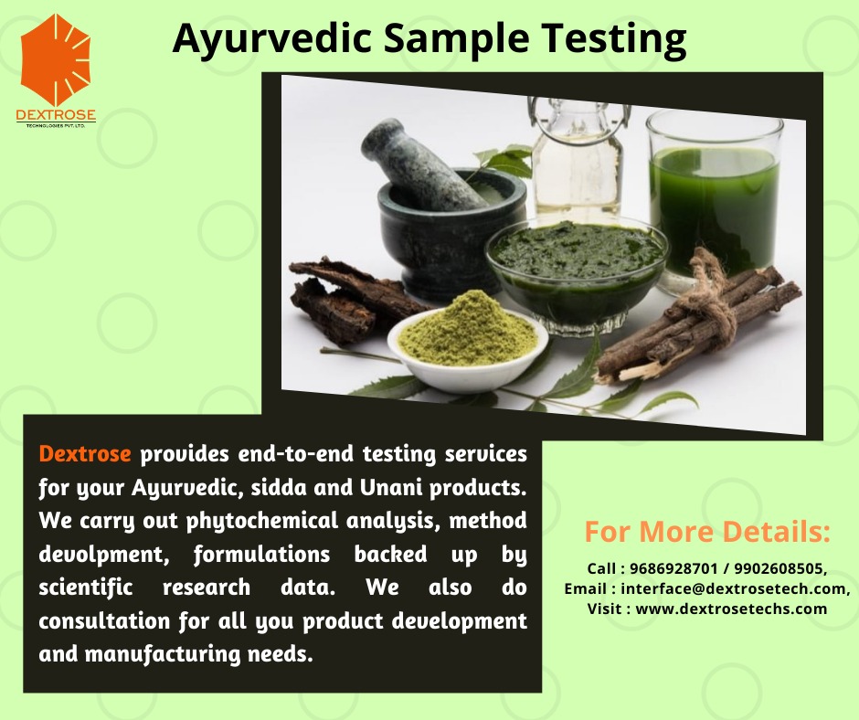 Dextrose Technologies Provides Ayurvedic sample Testing for herbal and synthetic drugs. We also give technical support for new drug development and herbal formulations for students, professionals and industries.