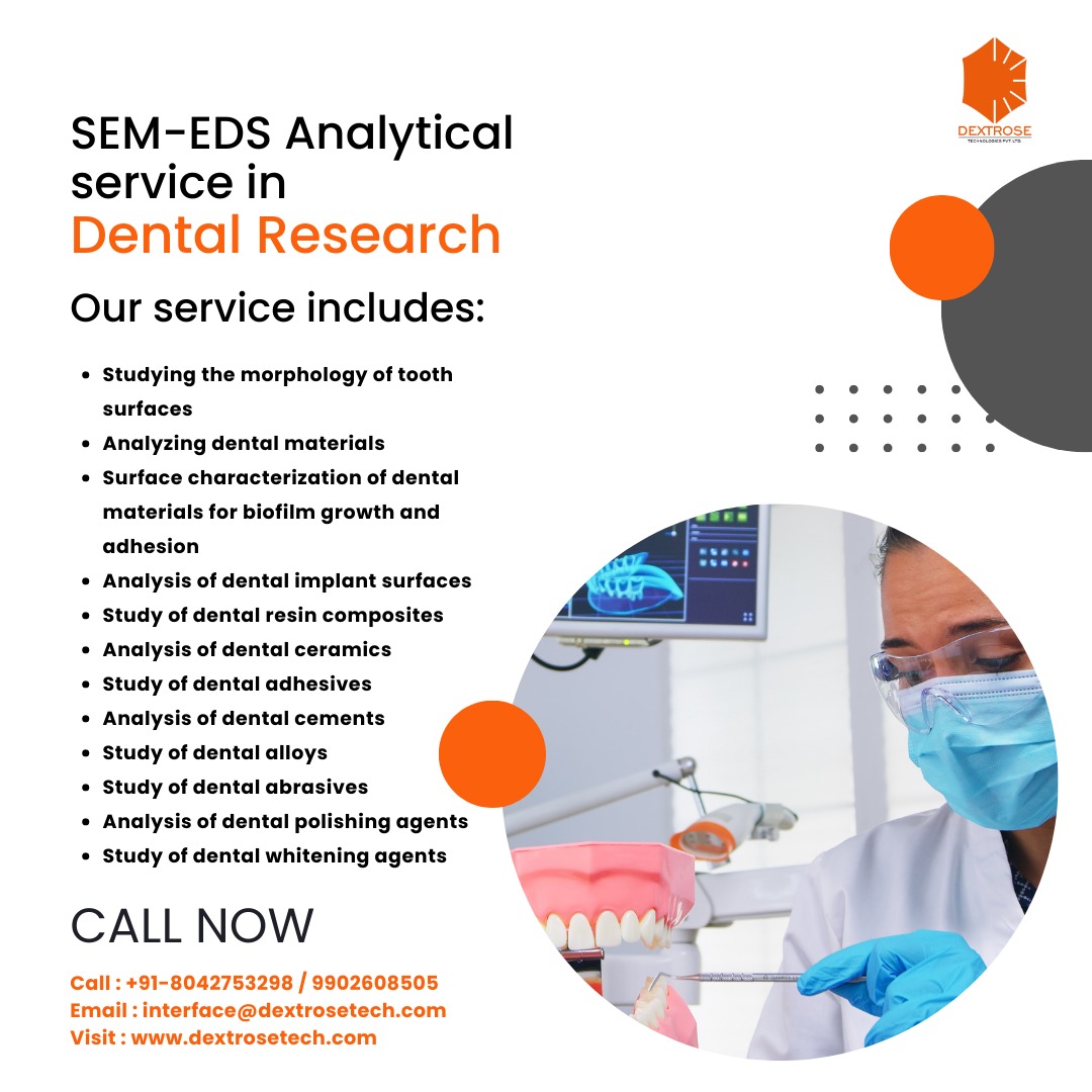 Dextrose Technologies Pvt Ltd provides SEM-EDS Analytical service in Dental research #SEMeducation#Microscopy#SEM_EDS #MaterialsCharacterization#NanoImaging #ElectronMicroscopy#EDSAnalysis#MicroscopyLab #MaterialScience#SEMImages#ElementalAnalysis #EDSSpectra#SEMResearch#Nanostructures #MicroscopyTechniques#SEM_EDS_Insights #MaterialsAnalysis#MicroscopyArt#EDSMicroanalysis #NanoScale#SampleImaging#SEM_EDSApplications #MaterialsResearch#MicroscopyCommunity #EDSMapping To know more: Log on to www.dextrosetech.com Contact No: 9902608505