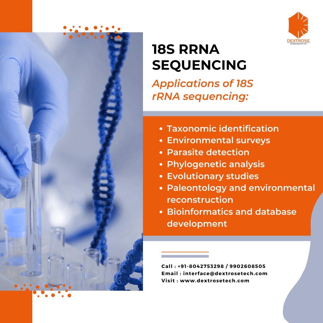 DTPL provides18S rRNA sequencing which is a molecular technique used to identify and study eukaryotic microorganisms, including protists, fungi, and some multicellular organisms. Similar to 16S rRNA sequencing, it targets a specific region of the 18S ribosomal RNA gene, which exhibits both conserved and variable regions. Here are some applications of 18S rRNA sequencing: Taxonomic identification: By comparing the obtained 18S rRNA gene sequences with reference databases, researchers can identify and classify eukaryotic microorganisms present in a sample. This helps in characterizing and understanding the diversity of eukaryotes in various environments, including marine, freshwater, soil, and clinical samples. Environmental surveys: 18S rRNA sequencing enables the study of eukaryotic microbial communities in different ecosystems. It provides insights into the biodiversity, community structure, and ecological roles of eukaryotes. This information is valuable for understanding ecosystem dynamics, ecological interactions, and responses to environmental changes. Parasite detection: 18S rRNA sequencing can be used for the identification and detection of eukaryotic parasites in clinical and veterinary samples. By comparing the obtained sequences with known parasite sequences, researchers can diagnose infections and monitor their prevalence and distribution. Phylogenetic analysis: 18S rRNA sequencing allows for the construction of phylogenetic trees to study the evolutionary relationships between eukaryotic microorganisms. This aids in understanding the evolutionary history, relatedness, and diversification of different taxa. Evolutionary studies: By analyzing 18S rRNA gene sequences across different species, researchers can investigate the evolution of eukaryotic organisms. This includes understanding the origin and diversification of major eukaryotic lineages, tracking evolutionary events, and studying the processes of speciation and adaptation. Paleontology and environmental reconstruction: Ancient DNA preserved in fossils or sediment cores can be used for 18S rRNA sequencing to explore the historical presence and diversity of eukaryotes. This helps in reconstructing past ecosystems, studying long-term evolutionary patterns, and understanding the impact of environmental changes on eukaryotic communities. Bioinformatics and database development: 18S rRNA sequencing contributes to the expansion and improvement of reference databases, such as SILVA and GenBank. The generated sequences help in refining taxonomic assignments, improving sequence alignments, and enhancing the accuracy of future analyses. #18S#18SrRNA#18Ssequencing#rRNAsequencing #EukaryoticSequencing#MicrobialEcology#EukaryoticDiversity #EukaryoticGenomics#Metagenomics#ProtistResearch #EukaryoticTaxonomy#GenomicAnalysis#Phylogenetics #TaxonomicProfiling#MicrobialCommunity#EnvironmentalGenomics#BiodiversityStudies#EukaryoticIdentification #MicrobialGenetics#EnvironmentalSequencing To know more: Log on to www.dextrosetech.com Contact No: 9902608505