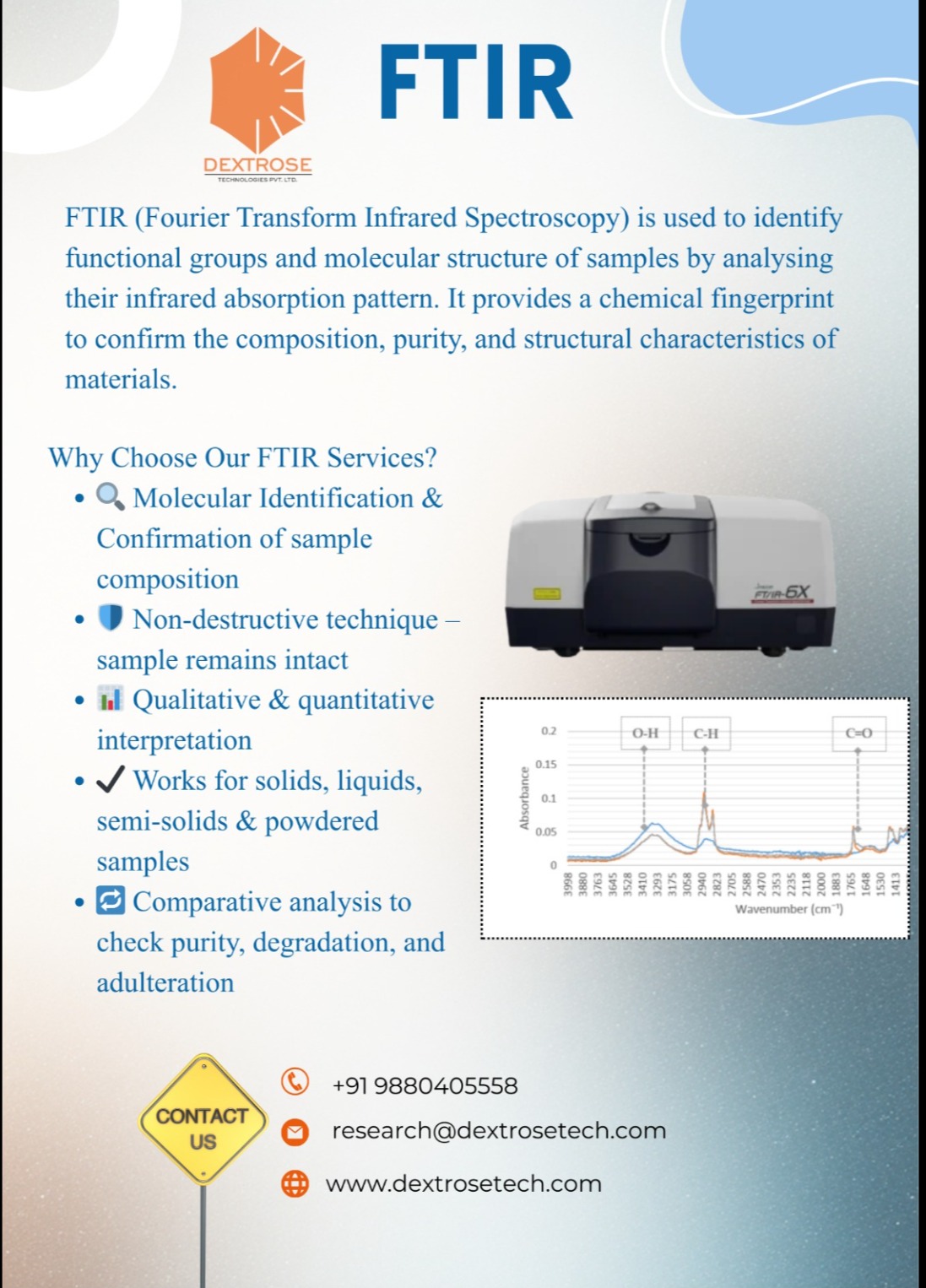 FTIR at Dextrose helps you compare reference and test samples quickly – ideal for stability studies, raw-material checks and QC investigations.