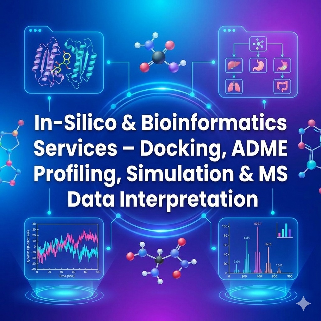 At Dextrose Technologies Pvt. Ltd., we provide in-silico and bioinformatics support to accelerate research decisions through computational analysis and structured interpretation. Our services cover molecular docking, in-silico ADME profiling, ligand–protein interaction simulations, and MS data interpretation for proteomics/metabolomics workflows—delivered with clear documentation and actionable insights. Molecular Docking Studies We perform docking studies to predict binding orientation and interaction patterns between ligands and target proteins, supporting hit prioritization and hypothesis building. ADME Profiling (In-silico) We generate in-silico ADME profiles to support early screening of drug-likeness and development risk (absorption, distribution, metabolism, excretion—scope dependent on project needs). Simulation Studies (Ligand–Protein Interaction) We support simulation-based evaluation of ligand–protein interactions (project scope dependent) to assess interaction stability and key binding drivers beyond docking snapshots. MS Data Interpretation (Proteomics / Metabolomics Support) We support interpretation of mass spectrometry datasets for proteomics/metabolomics projects by structuring outputs, summarizing key findings, and providing interpretation notes aligned to your research objective (dependent on the data format and workflow). Deliverables * Study summary and inputs used (structures, parameters, databases/tools) * Docking outputs and interaction summaries (poses, key residues) * In-silico ADME summary tables (as applicable) * Simulation summary metrics and interpretation (as applicable) * MS data interpretation summary and structured report (as applicable) Get started Share your target protein (PDB ID if available), ligand list (SMILES/SDF), and study goal (screening, lead optimization, or mechanism insight). For MS interpretation, share the data type (proteomics/metabolomics) and file formats.