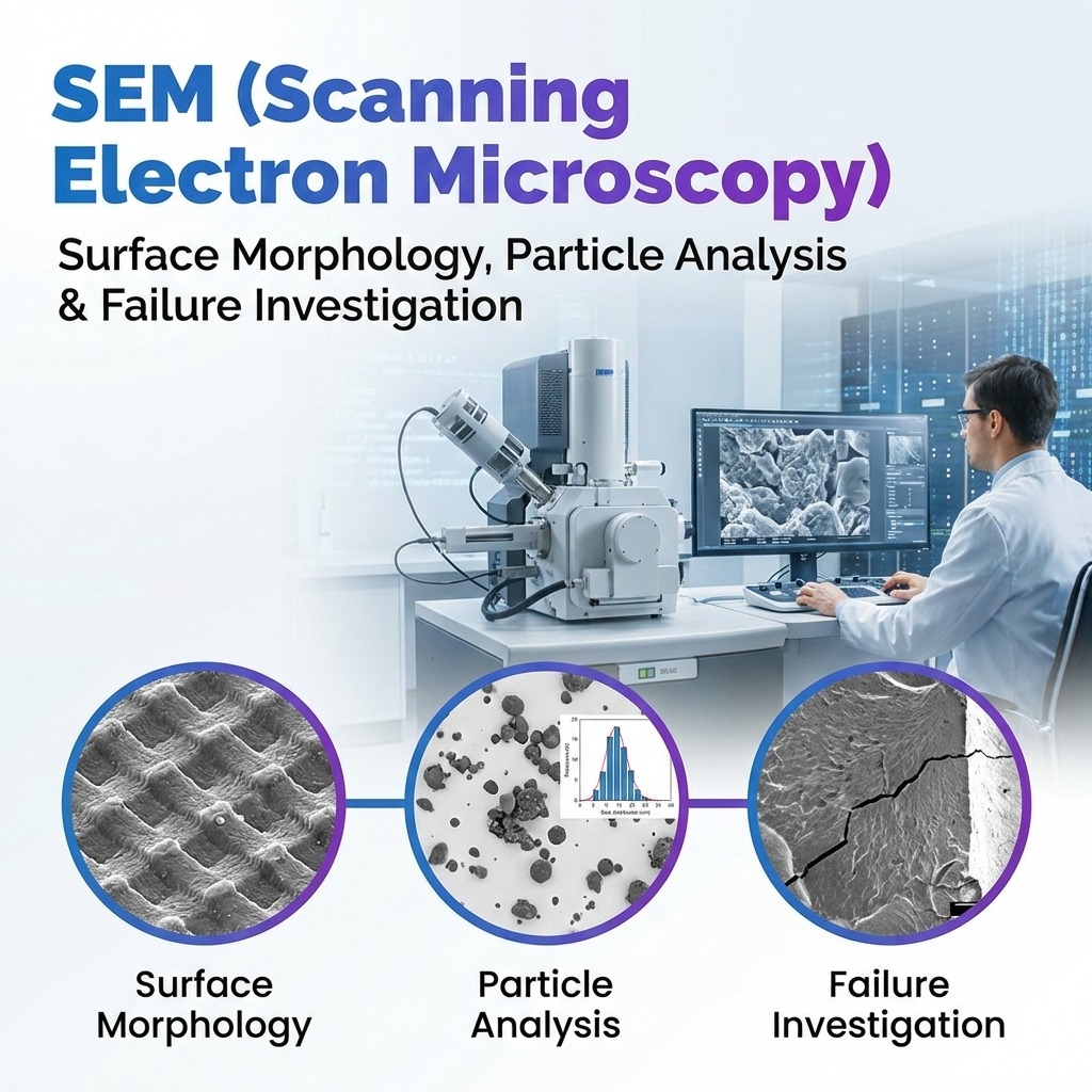 At Dextrose Technologies Pvt. Ltd., we provide SEM (Scanning Electron Microscopy) for high-resolution imaging and detailed surface characterization of materials and biological samples (as applicable). SEM helps you visualize surface morphology, topography, particles, and defects with clarity—supporting R&D, quality investigations, and failure analysis. Surface morphology and topographical analysis We capture high-magnification images to evaluate surface texture, porosity, cracks, coatings, and microstructural features. SEM is ideal for comparing batches, processing conditions, and material finishes. Particle shape and size evaluation We image particles to assess shape, agglomeration, and size distribution trends (image-based), supporting powders, pigments, fillers, nanomaterials (where applicable), and formulation studies. Failure and defect analysis We support root-cause investigations for defects such as fractures, delamination, inclusions, corrosion features, and surface contamination—providing image evidence and interpretation notes to guide corrective actions. Deliverables * High-resolution SEM images (multiple magnifications) * Observation summary highlighting key morphological features * Optional: EDX elemental mapping/spot analysis (if required) * Report-ready documentation for R&D or QC investigations Get started Share your sample type, objective (morphology/particles/failure), and preferred magnification range. We’ll recommend the best SEM imaging plan and deliverables.